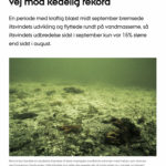 Kilde: DCE – Nationalt Center for Miljø og Energi En periode med kraftig blæst midt september bremsede iltsvindets udvikling og flyttede rundt på vandmasserne, så iltsvindets udbredelse sidst i september kun var 15% større end sidst i august. Læs resten via link